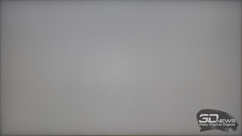 É assim que um fundo branco exibido na tela se parece no escuro. Mesmo sem correção adicional, uma queda significativa no brilho nas laterais da tela é claramente visível, bem como uma parte inferior da tela mais escura (em comparação com a parte superior).