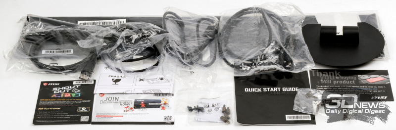 Também no kit pode haver um cabo adaptador de áudio em forma de Y para um conector de áudio combinado de 3,5 mm (nas instruções é indicado como um componente opcional de entrega), mas não foi encontrado na caixa com nosso monitor.