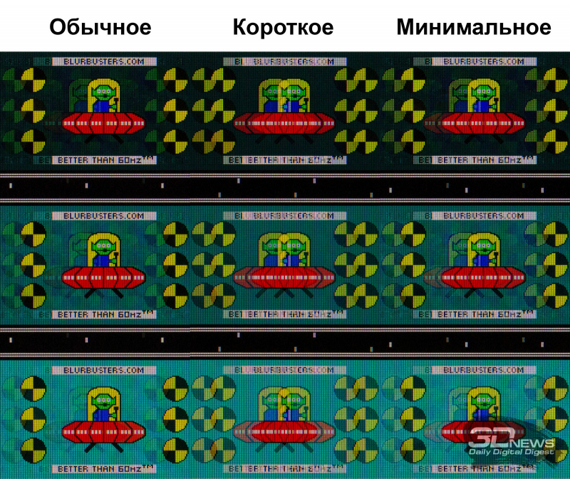 O modo padrão “Curto” é a melhor escolha: basta uma olhada na comparação com as outras duas predefinições de tempo de resposta.