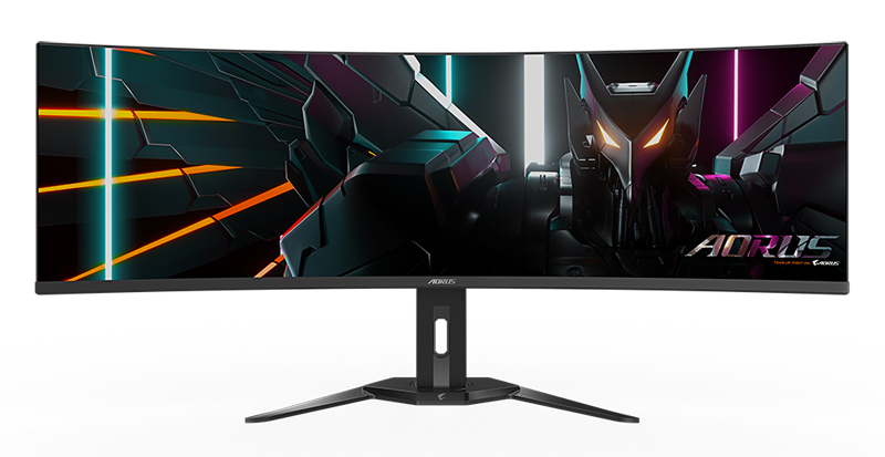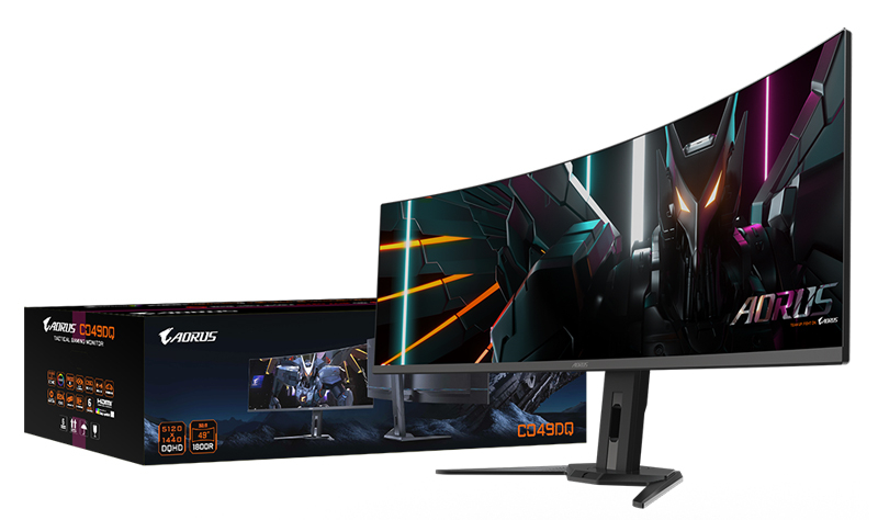 A Gigabyte apresentou o monitor de jogos Aorus CO49DQ, equipado com um painel QD-OLED curvo de 49 polegadas com resolução Dual QHD (5120 × 1440 pixels), revestimento anti-reflexo e raio de curvatura de 1800R. Segundo a empresa, o monitor usa um algoritmo especial de IA para proteger o painel OLED contra burn-in.