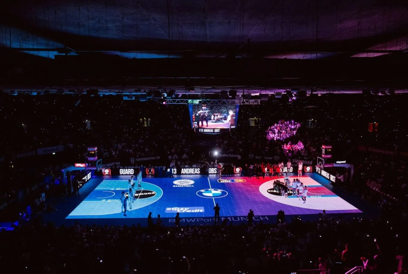 As tecnologias modernas penetram nas esferas da atividade humana e o desporto não é exceção. Um exemplo disso é o novo piso da quadra de basquete na arena BMW Park, em Munique, sede do clube local FC Bayern. O piso de madeira padrão foi substituído por uma enorme tela LED dinâmica ASB GlassFloor de forma permanente.
