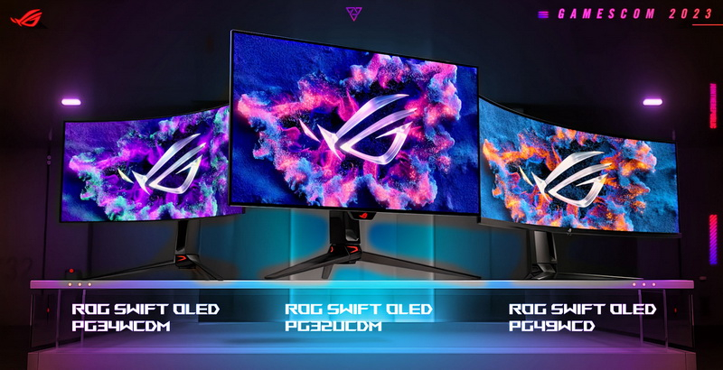 A ASUS revelou três monitores de jogos ROG Swift de última geração na Gamescom: ROG Swift PG32UCDM, ROG Swift PG34WCDM e ROG Swift OLED PG49WCD. As novidades diferem entre si no tamanho, mas se unem pelo uso de matrizes OLED com alta taxa de atualização.