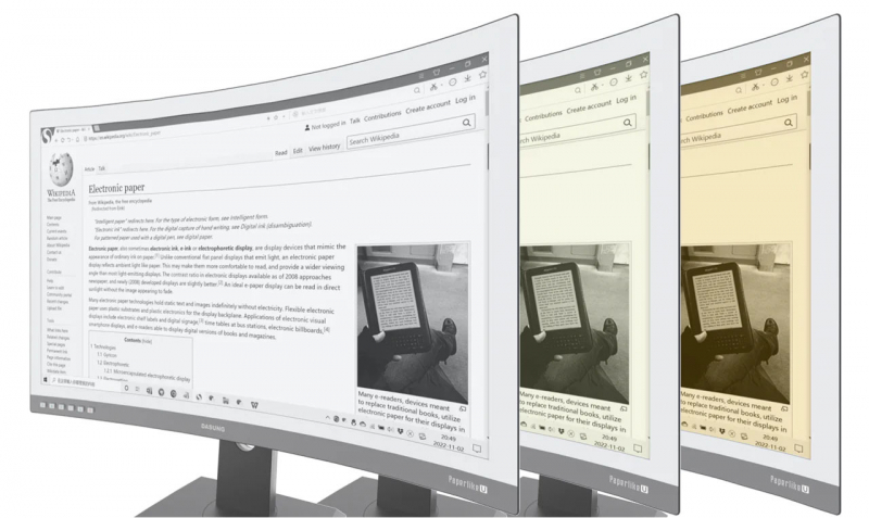 A Dasung começou a vender os primeiros monitores curvos do mundo baseados em tinta eletrônica (E Ink). Os novos Dasung 253U-F e Dasung 253U-NF estão equipados com telas de 25,3 polegadas com resolução de 3200 × 1800 pixels e uma curvatura muito modesta – o raio de curvatura é 4000R.