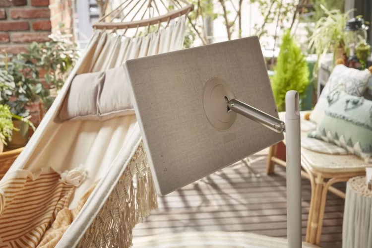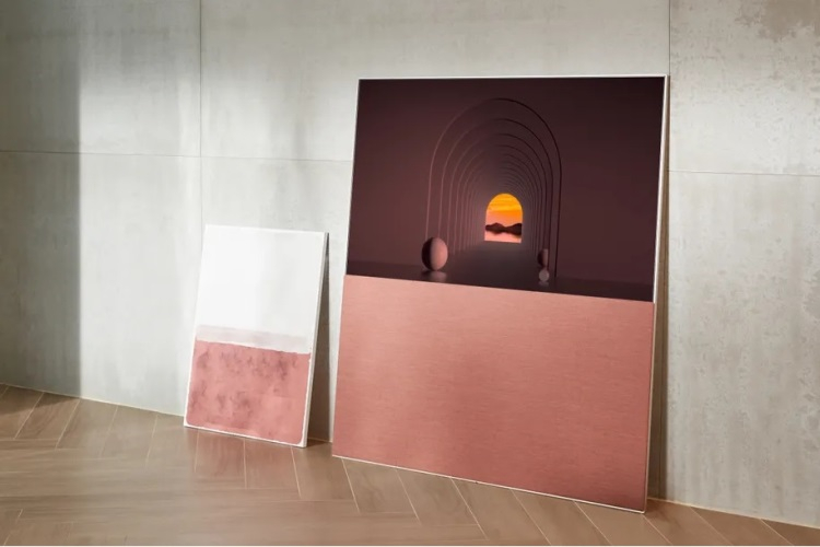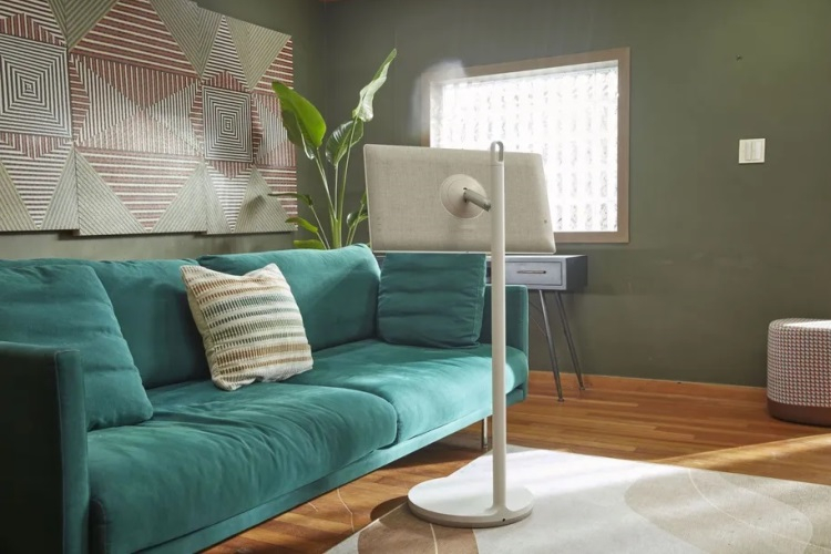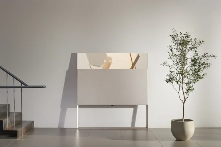 A segunda novidade é o modelo Objet (foto abaixo), estilizado como uma tela e com um design bastante minimalista. Esta TV de 65 polegadas vem com uma capa de tecido que pode ocultar o painel recebendo um comando remoto do usuário. Segundo relatos, os clientes terão várias opções de capa, feitas em cores diferentes.