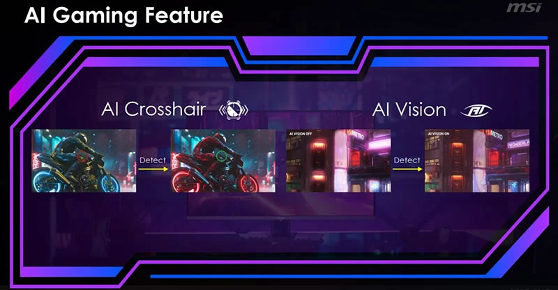 Os desenvolvedores prestaram atenção especial às funções adicionais do jogo. O monitor suporta o aplicativo Gaming Intelligence proprietário da MSI para controlar o monitor em um ambiente Windows, bem como tecnologias como AI Vision e AI Crosshair, que ajudam os jogadores em vários cenários de jogo.