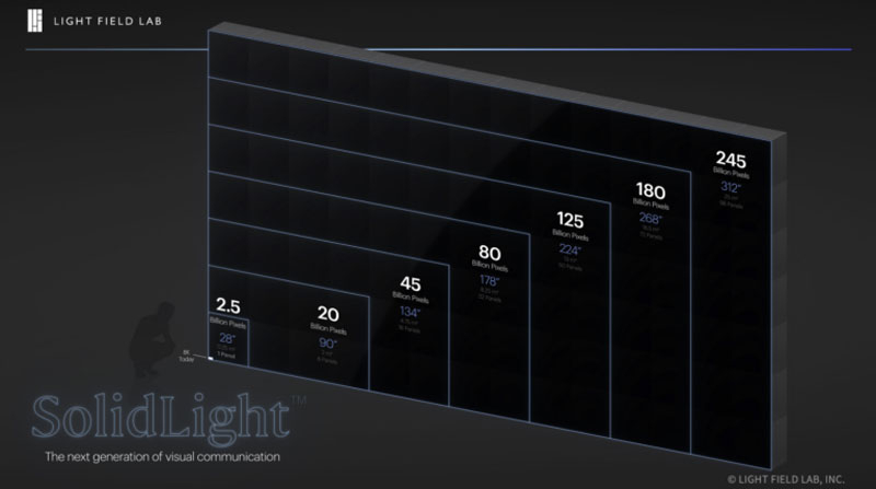 Como na vida a luz de um mesmo ponto é refletida em diferentes direções, as exibições do campo de luz requerem um excesso significativo de pixels. Da forma como o Light Field Lab imagina, para criar um volume aceitável, os pixels devem ser três ordens de magnitude maiores do que para uma imagem plana. Durante a primeira demonstração fechada, os jornalistas notaram que à medida que se aproximavam da tela de 1 m2, a estrutura de pixels do alienígena virtual ficava cada vez melhor visível.