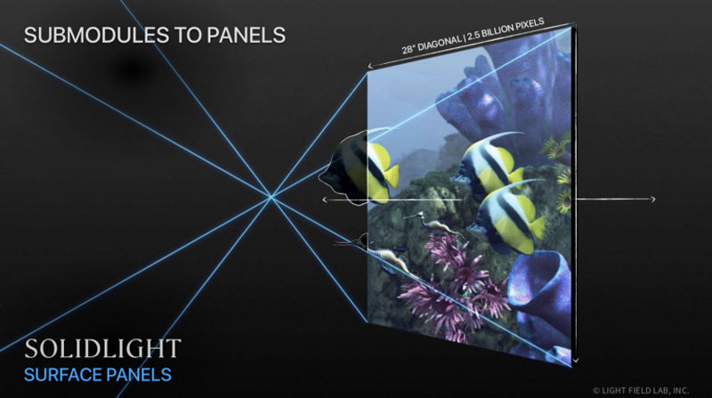 Light Field Lab, como o próprio nome sugere, lida com os chamados displays de campo de luz. No caso mais simples, são telas com sobreposições de milhões ou mais lentes Fresnel – como nos cartões postais estereoscópicos do passado. A ideia é que a luz de cada pixel seja direcionada ao observador em diferentes ângulos, simulando reflexos dos objetos da cena. Na vida, vemos o que nos rodeia graças aos reflexos dos raios, e o efeito do campo de luz permite-nos tornar a nossa percepção do volume do mundo virtual, por assim dizer, natural, sem quaisquer truques com o cérebro, como combinar imagens para a esquerda e olhos direitos.