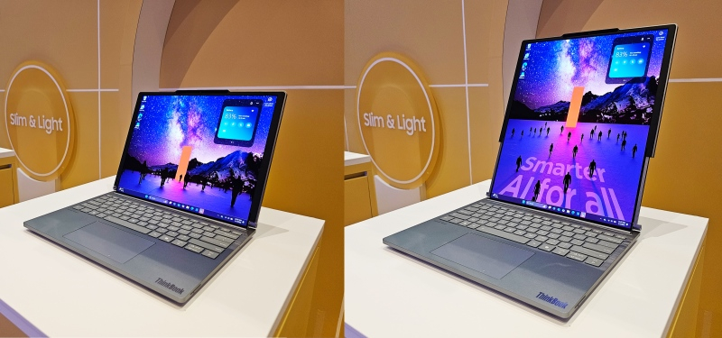 O primeiro laptop com tela OLED rolável foi o ThinkBook Plus G6 Rollable. Está equipado com um display de 14 polegadas que, se necessário, pode ser aumentado verticalmente em quase 50%. Quando recolhida, a tela tem uma proporção de 5:4 e, quando expandida, esse número muda para 8:9 e a diagonal da tela aumenta para 16,7 polegadas. Espera-se que o ThinkBook Plus G6 Rollable esteja à venda em junho.