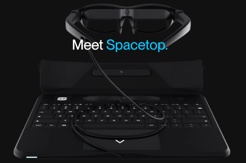 O dispositivo de $ 2.000 é uma ferramenta de negócios baseada em Arm. O laptop executa o sistema operacional Android de código aberto (AOSP) e está equipado com um headset AR personalizado. Além da silhueta incomum, o corpo do Spacetop não é diferente de um laptop comum – pelo menos na parte inferior. O corpo mede 26,6 cm de largura e 25 cm de profundidade e pesa 1,5 kg incluindo o fone de ouvido, que é muito semelhante a um laptop comum. Com exceção de uma espessura de 4 cm, atípica para laptops modernos. Os notebooks são fabricados na fábrica do fabricante chinês ODM Wistron.