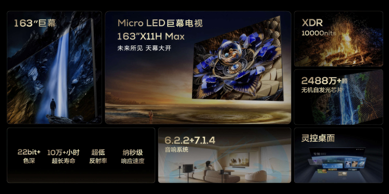 A empresa também anunciou seu modelo de TV mais avançado exclusivamente para a China. Chama-se X11H Max e está equipado com uma tela de 163 polegadas (200 cm). Esta TV tem uma classificação de brilho XDR de 10.000 cd/m2. Ele suporta gama de cores de 22 bits e exibição HDR de 12 bits.