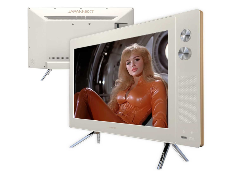 JAPANNEXT afirma que o novo monitor trará nostalgia aos usuários com seu design retrô e suporte ao modo monocromático. Assim como as TVs antigas, o aparelho vem com dois botões para ajustes. No entanto, a maioria das configurações do monitor pode ser acessada através do menu digital.