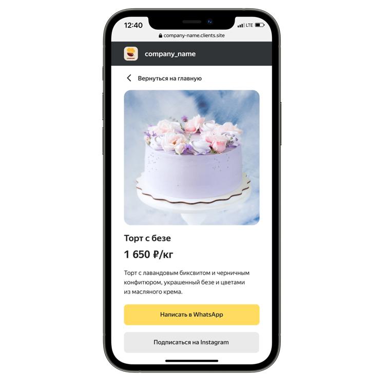 Todos os usuários de uma assinatura de publicidade de Yandex.Business podem criar um site. Para fazer isso, ao lançar uma nova campanha publicitária, basta selecionar os posts com produtos ou serviços da sua conta do Instagram, definir preços e adicionar um botão para encomendar produtos e serviços.