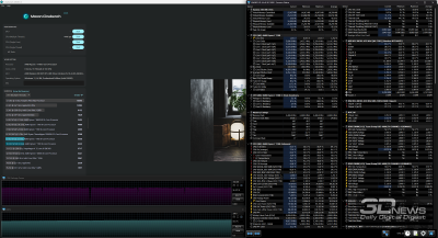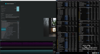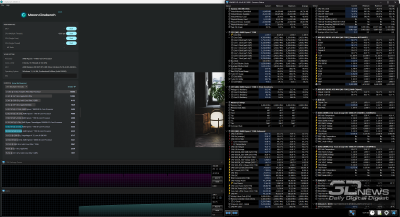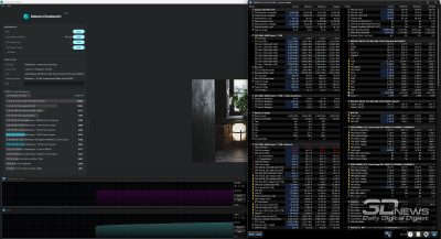 O desempenho nos jogos foi determinado utilizando o conhecido programa CapFrameX. Ele mede o tempo de renderização de cada quadro. O uso do primeiro percentil em vez do número mínimo de quadros por segundo visa eliminar picos aleatórios nos resultados.As quedas de desempenho foram causadas por fatores não diretamente relacionados aos componentes principais da plataforma.