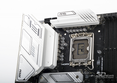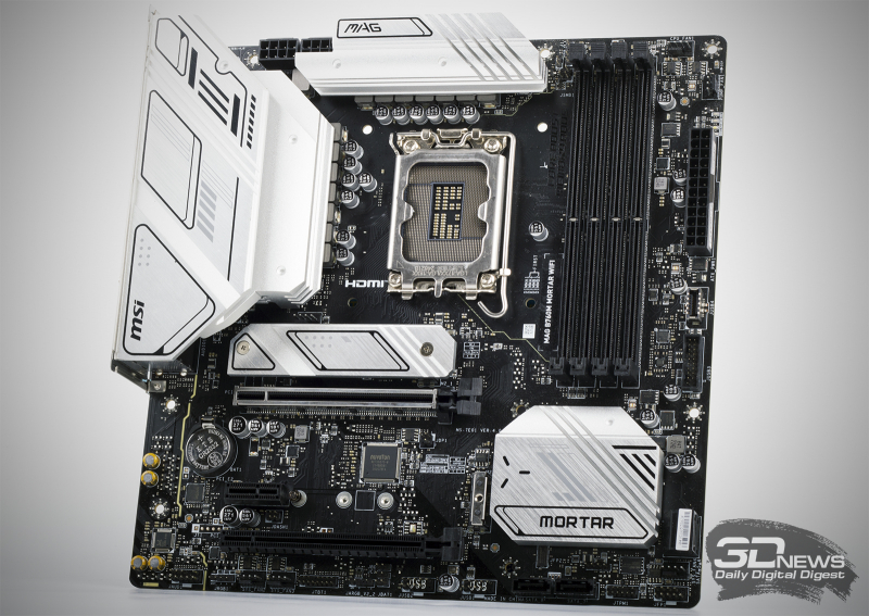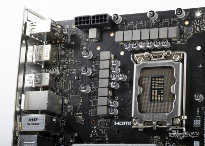 Acontece que o circuito de alimentação do Mortar funciona diretamente, sem duplicadores e fluxos paralelos. Em comparação com a versão B660, tornou-se melhor, pois adquiriu conjuntos Renesas de maior qualidade. Isso é compreensível: embora os chipsets B660 e B760 tenham funcionalidades semelhantes, o MAG B760M MORTAR WIFI foi desenvolvido levando em consideração o lançamento dos processadores Core de 13ª geração – mais quentes e vorazes que o Core 12.
