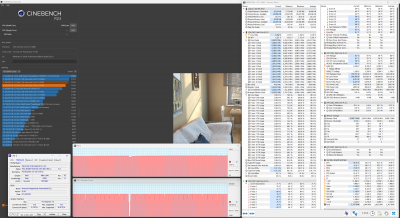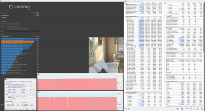 O processador e o subsistema de energia das placas-mãe foram carregados com o programa CINEBENCH R23. A prática mostra que entre os softwares profissionais existem aplicativos funcionais que podem carregar chips Core para consumir mais de 200 W e, portanto, a operação estável do computador em tais programas é uma garantia de que o sistema posteriormente não superaquecerá, estrangulará e funcionará de forma instável.