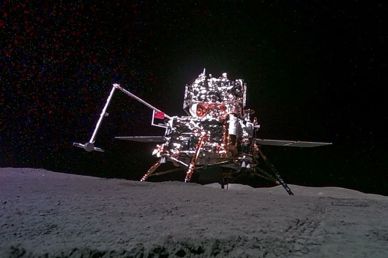 O módulo lunar Chang’e-6 na superfície (foto tirada pela câmera móvel da missão). Fonte da imagem: CNSA