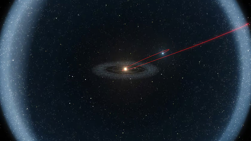 A trajetória de um objeto hipotético da nuvem de Oort. Fonte da imagem: ESO/L. Calçada