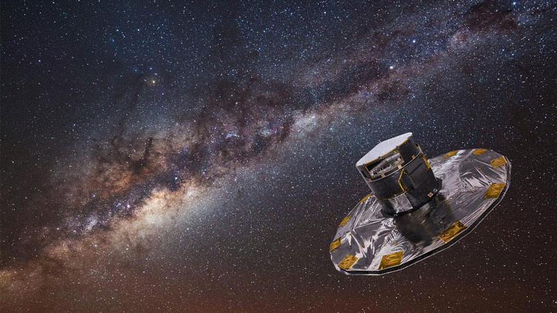 Impressão artística do satélite astrométrico Gaia. Fonte da imagem: ESA