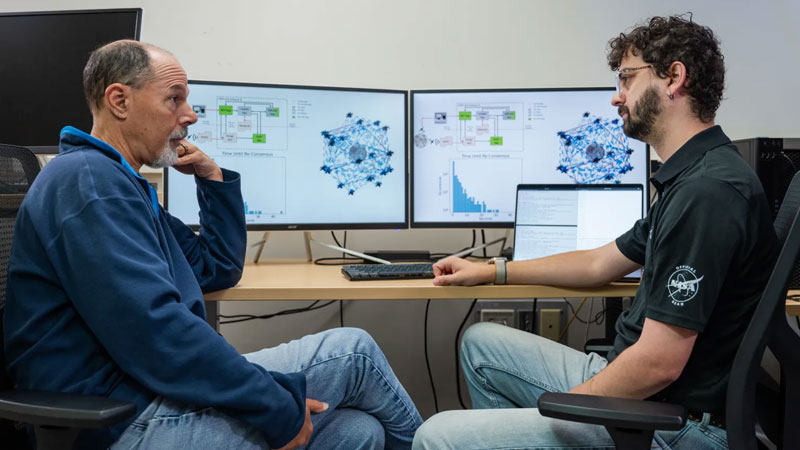No laboratório da NASA, os pesquisadores coletaram uma imitação de enxames dos interruptores no rack do servidor usando os computadores em quadros dos cubos. Este enxame foi testado sob as condições simuladas de uma órbita baixa e alta perto da lua. O sistema enfrentou as tarefas de criar uma rede distribuída para fornecer serviços de navegação no espaço próximo à lua e na superfície da lua, bem como coordenação do tempo em satélites (a baixa gravidade força o relógio na lua “tick” mais rápido) . A modelagem mostrou que o sistema automático para distribuir tarefas no grupo enxame sem participação humana lida com sucesso com o gerenciamento de 60 satélites. Na próxima etapa, a NASA planeja aumentar seu número para 100 e continuar construindo o grupo.