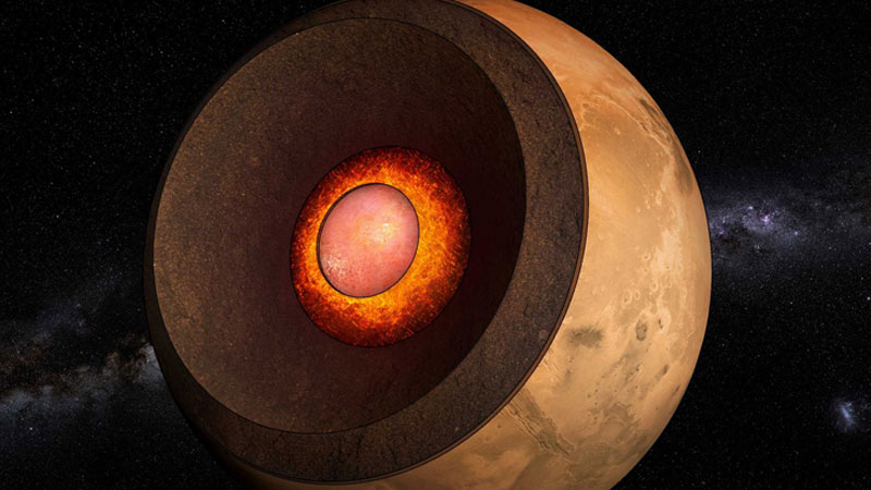 A sonda InSight começou a coletar dados sobre a atividade sísmica em Marte em dezembro de 2018. No primeiro ano desde a sua chegada ao planeta, a sonda registrou 170 terremotos marcianos. Com base nessas informações, os cientistas calcularam o tamanho do núcleo, do manto e da crosta de Marte. Descobriu-se que o planeta tem um núcleo enorme em relação ao seu tamanho, cujo raio foi estabelecido em 1.830 km (o raio de Marte é 3.390 km). O núcleo da Terra é muito menor neste aspecto, o que torna Marte um objeto interessante para estudar.