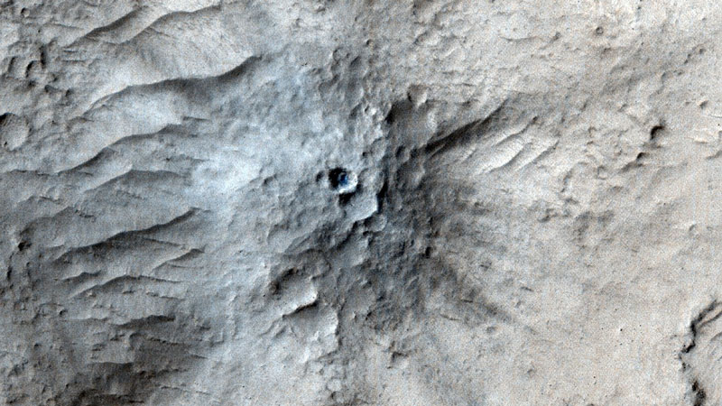 Cratera de choque fresca na região de Cerberus Fossae. Fonte de imagens: NASA