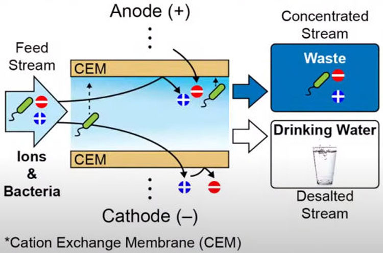 A dessalinização e purificação da água no sistema inventado pelos cientistas do MIT ocorre devido à troca iônica em membranas eletricamente condutoras. As membranas criam campos elétricos com diferentes polaridades ao redor do canal para bombear água. O importante é que o sistema utiliza bombas de baixa pressão, pois não há necessidade de empurrar água pelos filtros. Foi isso que melhorou radicalmente a eficiência energética do sistema desenvolvido.