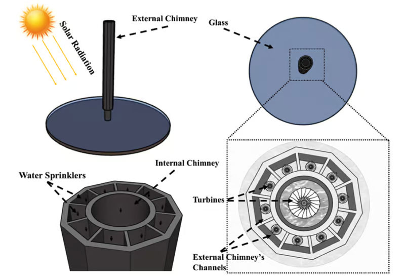 Um grupo de cientistas da Jordan Technical University. Al-Hussein e a Universidade do Qatar modelaram uma torre “solar” com cerca de 200 m de altura que poderia gerar eletricidade não só durante o dia, mas também à noite. As turbinas orientadas verticalmente na torre impulsionarão os fluxos de ar para cima e para baixo, operando assim 24 horas por dia, 7 dias por semana.