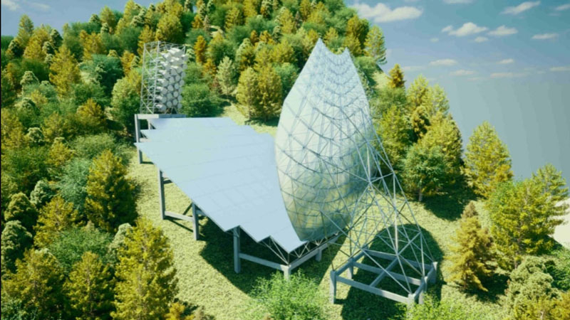 Impressão artística do radiotelescópio BINGO. Crédito da imagem: Colaboração BINGO