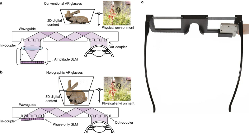 Um grupo de pesquisadores da Universidade de Stanford (EUA) desenvolveu uma nova tecnologia para criação de uma imagem holográfica, implementada por meio de algoritmos de inteligência artificial. Envolve dimensões compactas do equipamento necessário – esta tecnologia pode formar a base de uma nova geração de óculos de realidade aumentada (AR).