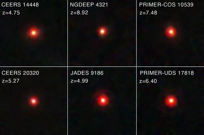 Algumas das galáxias abertas de “pequenos pontos vermelhos”. Fonte da imagem: NASA
