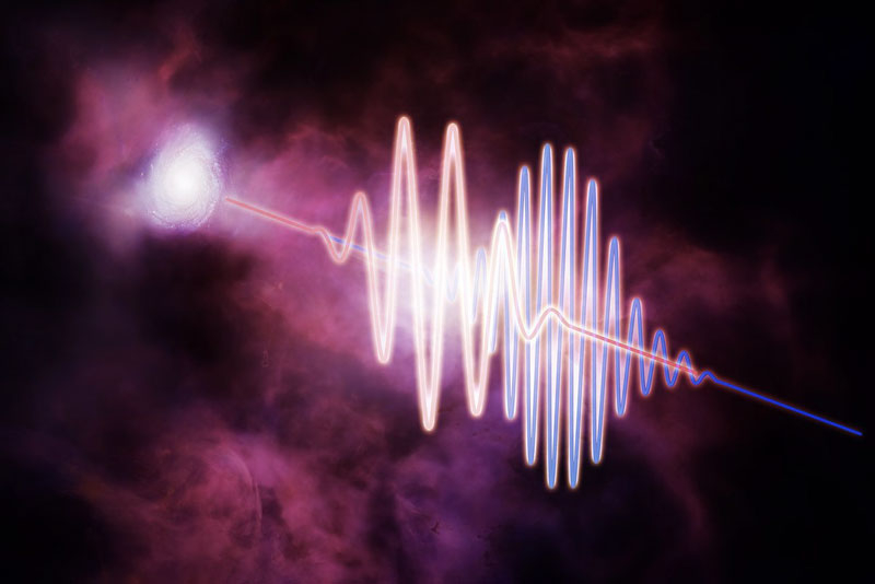 Quando as ondas de rádio de rajadas rápidas de rádio chegam à Terra, elas são espalhadas em diferentes comprimentos de onda, assim como um prisma transforma a luz do sol em um arco-íris. O grau desse espalhamento — ou dispersão — depende da quantidade de matéria no caminho da luz.