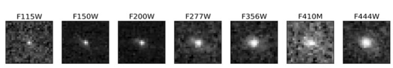 O telescópio fotografou três galáxias aproximadamente 400-600 milhões de anos após o Big Bang. Naquela época, as galáxias eram aglomerados de matéria escura e comum, aparentemente com um buraco negro no centro. Ainda não havia estrelas neles, ou havia algumas delas em extinção, e apenas nos primeiros estágios da evolução. A matéria comum naquela época era praticamente apenas hidrogênio. Foi o seu movimento e absorção que os instrumentos espectrais de Webb detectaram.