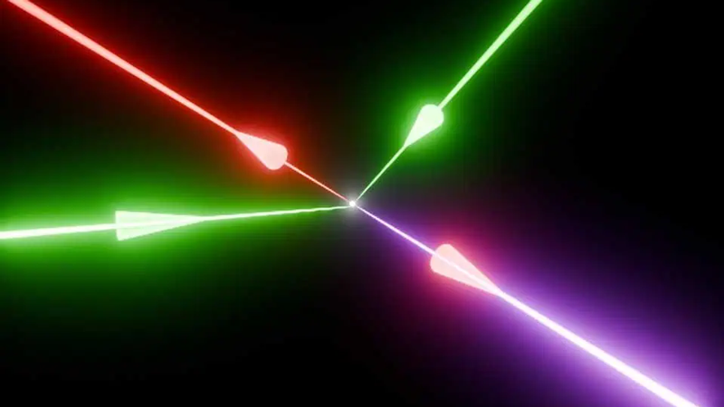 O experimento de simulação baseou-se na reprodução do efeito de espalhamento fóton-fóton. Dois feixes de laser com potência de centenas de petawatts (mostrados em verde na ilustração) cruzaram-se em um ponto com um laser polarizador de menor potência (vermelho). Mais precisamente, esse laser polarizou o vácuo, criando condições para o espalhamento de fótons em partículas virtuais. Como resultado, surgiu um quarto feixe (violeta na ilustração), com características diferentes da radiação original – comprimento de onda e nível de energia. Ao mesmo tempo, foram observadas as leis de conservação de energia e momento.