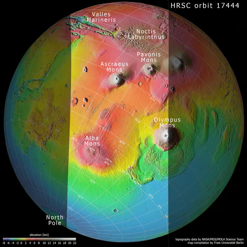 Estações automáticas na órbita de Marte tiram fotos de sua superfície, via de regra, com melhor iluminação – durante o dia. Portanto, os cientistas ainda não conseguiram ver a geada nos topos dos vulcões marcianos no equador – ela derreteu muito rapidamente com o nascer do sol. Cientistas da Europa combinaram dados observacionais do Trace Gas Orbiter e da Mars Express da Agência Espacial Europeia, após os quais conseguiram obter evidências convincentes de geadas regulares nos topos das montanhas equatoriais marcianas, incluindo o Olympus Mons, com 21,9 km de altura – o recorde absoluto titular no sistema solar.