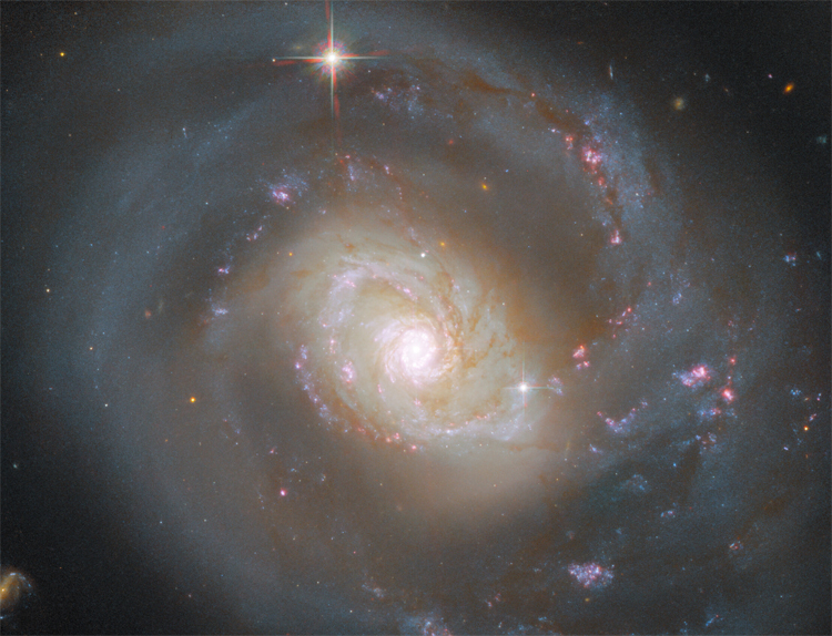 A galáxia espiral NGC 7469 está a 230 milhões de anos-luz de distância. Anteriormente, este objeto e sua companheira, a galáxia menor IC 5283, foram observados pelo Telescópio Espacial Hubble. Juntas, ambas as galáxias formam a estrutura de Arp 298. Elas estão conectadas por interação gravitacional e influenciam ativamente umas às outras – elas roubam matéria e torcem o tango galáctico em pares. A observação desses objetos nos permite ver a interação de galáxias a grandes distâncias, bem como estudar o crescimento de buracos negros supermassivos usando o exemplo de um buraco no centro de um parceiro maior.