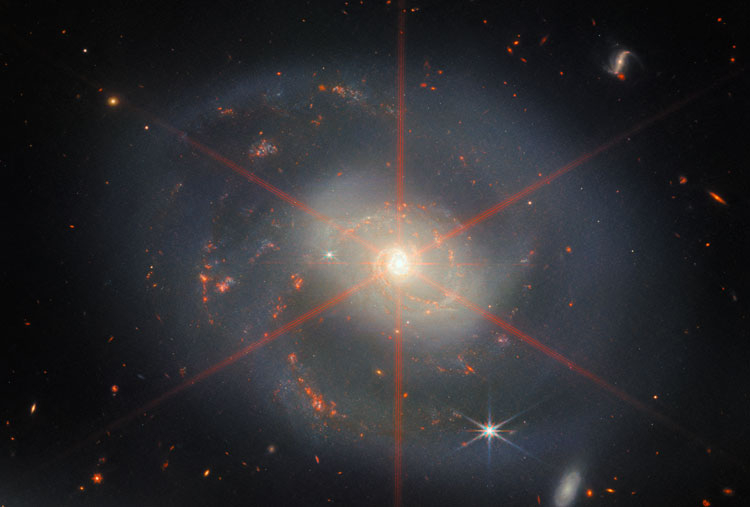 Como James Webb está equipado com dispositivos de observação infravermelha que o Hubble não possui, a imagem do NGC 7469 ficou mais brilhante no centro – muita matéria cai no buraco negro ali, que libera muita energia durante o processo de acreção , inclusive no espectro infravermelho.