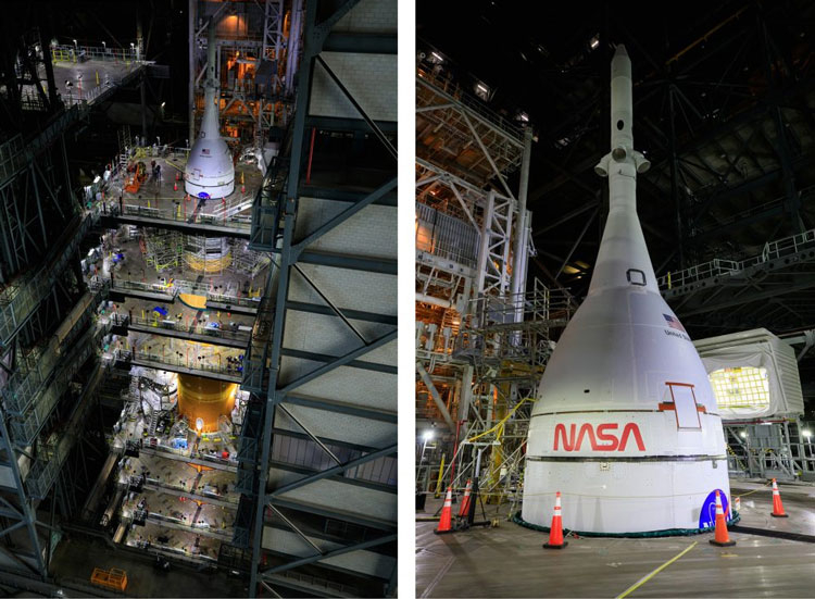A NASA informou que o trabalho direto começou na preparação do veículo de lançamento SLS para lançamento para um ensaio geral do lançamento. Para montar o foguete no hangar, foram trazidas 20 plataformas, nas quais trabalham os montadores. No outro dia, as 2 primeiras plataformas foram retiradas e vão retirar tudo aos poucos para liberar o foguete para remoção até a plataforma de lançamento.