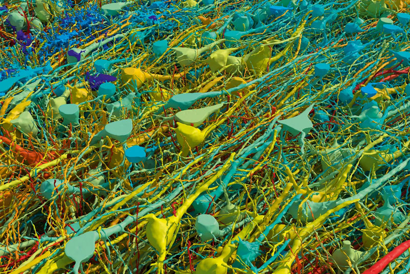 Dez anos de trabalho árduo levaram ao primeiro mapa tridimensional do mundo de um fragmento do cérebro humano com resolução subcelular. Em um milímetro cúbico de substância cinzenta do cérebro feminino, foram encontradas 57 mil células e 150 milhões de sinapses. O mapa revelou os detalhes de todos os meandros do tecido nervoso em toda a variedade de células ali encontradas, entre as quais havia desconhecidas da ciência, o que elevou o estudo da topologia cerebral a um novo patamar.