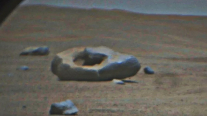 Na sexta-feira, 23 de junho, o rover Perseverance tirou uma foto de uma rocha grande e escura com um buraco no centro. Ao lado do misterioso objeto estão pedras menores, mas da mesma tonalidade, o que indica indiretamente sua origem comum. É possível que estejamos falando de um grande meteorito.