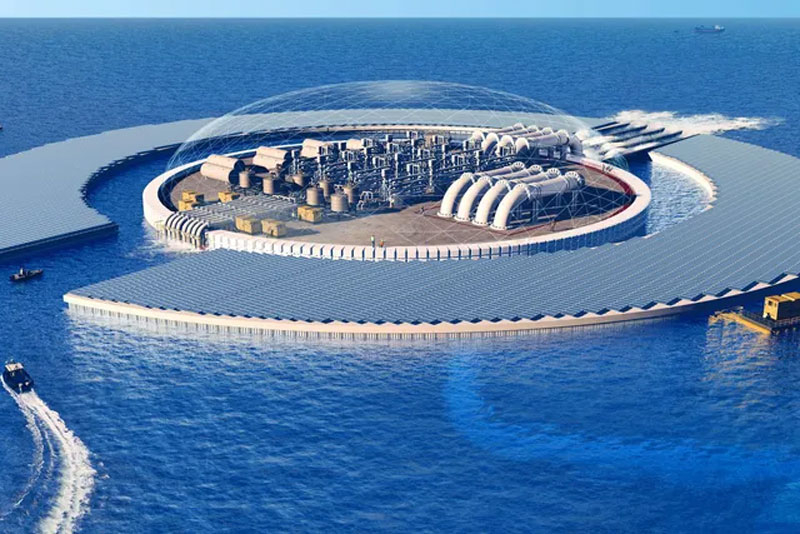 Projeto de estação de extração de CO2 da água do mar. Fonte da imagem: Caltech
