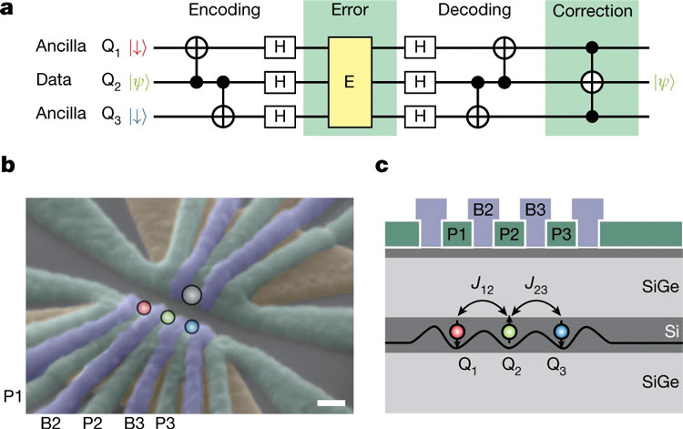 Um avanço no desenvolvimento de soluções para correção de erros bem-sucedida em qubits de spin de silício foi relatado por cientistas japoneses do Riken Center for Emergent Matter Science. Há um ano, a equipe do centro criou um circuito de silício de três qubits, com o qual eles mostraram a capacidade de entrelaçar todos os três qubits. Os pesquisadores foram além e apresentaram um circuito lógico de três qubits totalmente controlado com base nesse desenvolvimento.