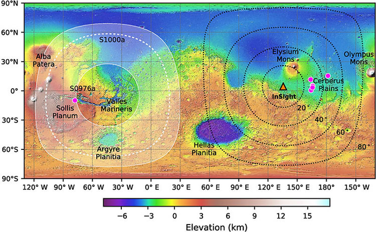 Como pesquisadores da Universidade de Bristol relataram em um artigo recente no The Seismic Record, em 25 de agosto de 2021 e 24 dias depois, os instrumentos da sonda InSight registraram tremores no outro lado de Marte pela primeira vez. E esses choques foram recordes em magnitude: magnitudes de 4,2 e 4,1, respectivamente, o que foi cinco vezes maior que os recordes anteriores. Além disso, o equipamento da sonda registrou pela primeira vez as chamadas ondas transversais difratadas (Pdiff), que cruzam a fronteira entre o manto e o núcleo. Antes disso, apenas as ondas do tipo P e S (longitudinais e transversais/secundárias) eram registradas.