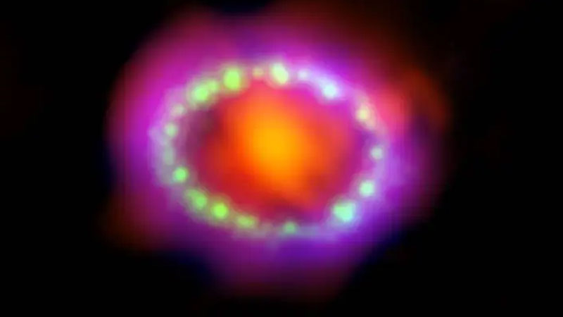 Restos da última supernova próxima, que explodiu em fevereiro de 1987. Fonte da imagem: NASA