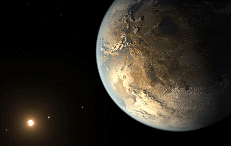 Exoplaneta Kepler-186f visto pelo artista. Fonte da imagem: NASA Ames / JPL-Caltech / T. Pyle