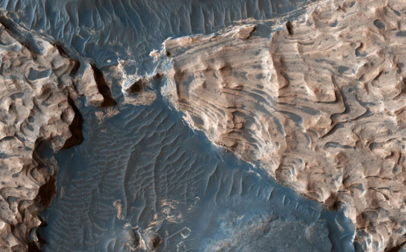 Vista de uma antiga cratera de impacto em Marte. Crédito da imagem: NASA
