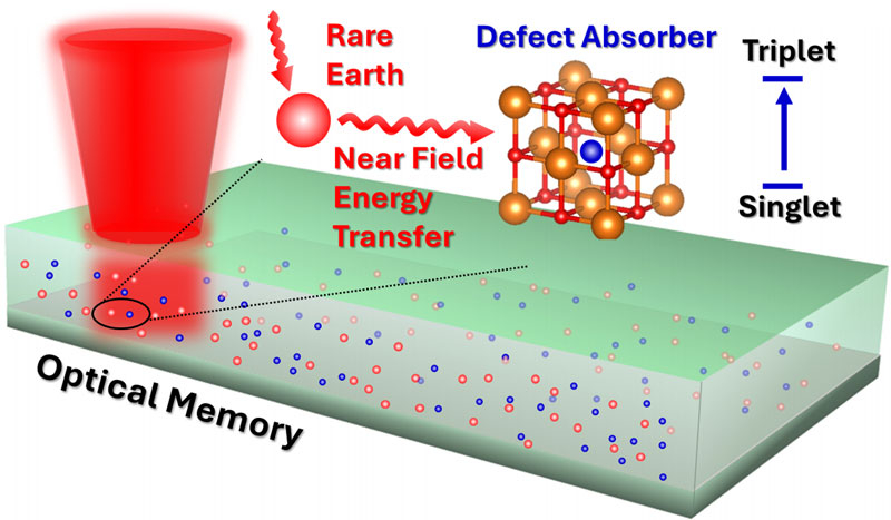 Da mesma forma, o material pode ficar saturado com células de registro, o que seriam defeitos na estrutura cristalina. Dados átomos e defeitos de terras raras suficientes, a maioria deles estaria a uma distância nanométrica um do outro. A essência da descoberta é que os emissores de terras raras (mais precisamente, os reemissores) alteram irreversivelmente ou por muito tempo os estados quânticos de defeitos próximos (transferem-nos de um estado singleto para um estado tripleto). E esta é a memória operando na faixa óptica. E uma memória muito densa – no nível da estrutura atômica.