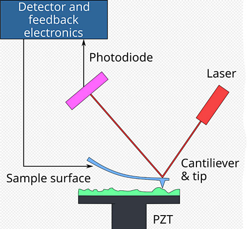 Além disso, um espelho foi instalado no topo da ponta, para onde o feixe de laser foi direcionado. À medida que o nanorrelevo mudava, a ponta do microscópio se movia, fazendo com que o sinal refletido flutuasse. Esse sinal foi recebido por um fotodetector, registrando a mudança na altura do revestimento, que também pode ser usado para codificar informações em um disco rígido molecular.