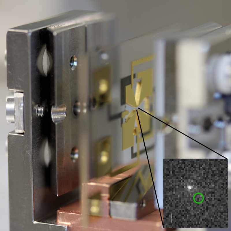 Ambos os íons estavam fortemente ligados na armadilha por interações nucleares e influenciavam-se mutuamente de uma forma conhecida. A espectroscopia de lógica quântica foi utilizada para ler os estados do íon magnésio. Na imagem inserida acima, a carga do íon magnésio pode ser claramente traçada, enquanto para o íon alumínio apenas a região aproximada de sua localização é conhecida (circulada em verde).