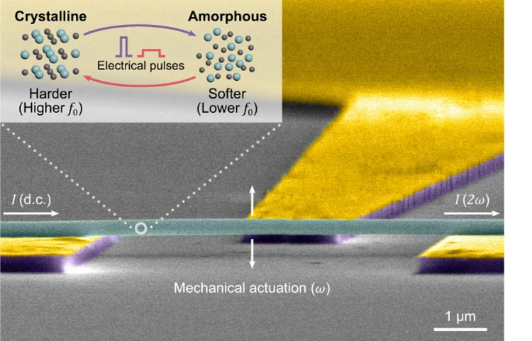 Os calcogenídeos sob a influência do aquecimento e após o resfriamento são capazes de alterar sua estrutura atômica – para se tornar dielétricos amorfos ou cristais condutores. A mesma propriedade dos calcogênios é utilizada em CDs ópticos regraváveis, DVDs e outros discos, contando apenas com óptica. Os pesquisadores criaram nanostrings de calcogeneto de telureto de germânio em ressonadores de frequência, cujo aquecimento de curto prazo alterou suas propriedades físicas.
