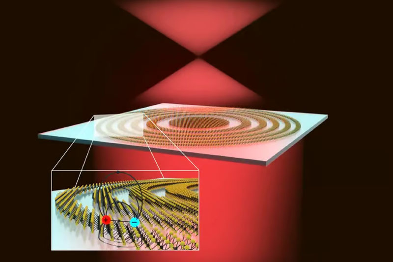 No seu trabalho, publicado na revista Nano Letters, os investigadores mostraram como a lente foca a luz vermelha. A distância focal é de 1 mm da lente. Os círculos de dissulfeto de tungstênio absorvem comprimentos de onda vermelhos e depois os emitem para um ponto focal. A rigor, a luz é emitida por quasipartículas de vida curta, excitons, que emitem à medida que decaem. Todos os outros comprimentos de onda passam através do material da lente quase completamente livremente. Tal seletividade, acreditam os cientistas, pode ser útil em óculos de realidade aumentada. Tudo ficará claramente visível através deles, mas parte da luz pode ser focada e transportar informações adicionais.
